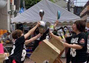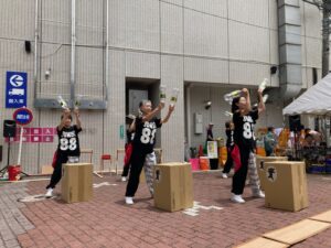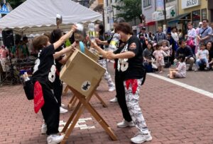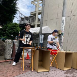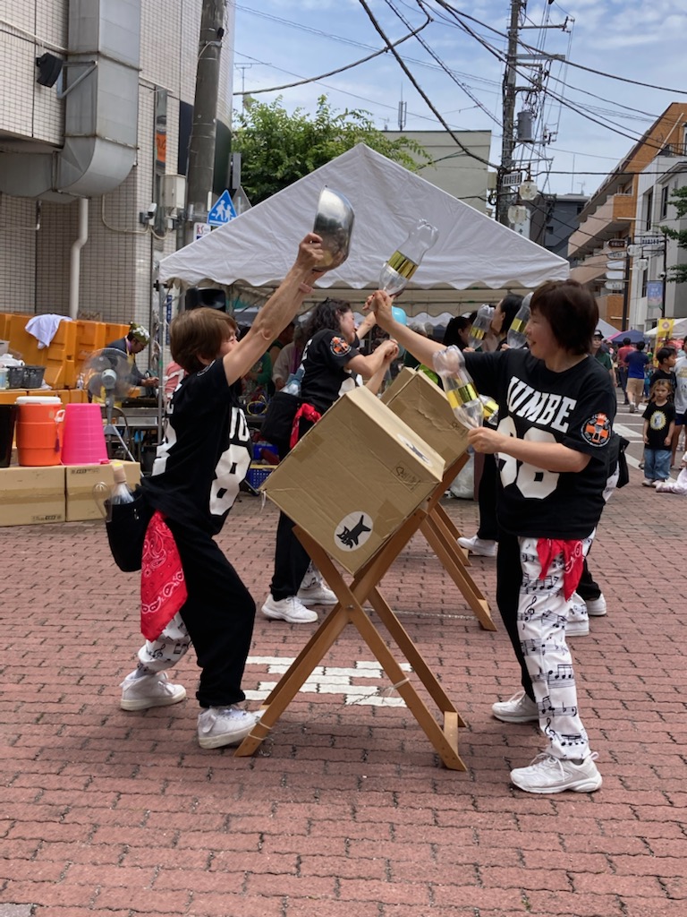ただ、さすがに段ボールの湿り気はとれず、公演の最後までボコボコとこもった音だったので、それだけがすごく残念でした。また、みんな熱中症には気を付けてこまめに水分補給していたけれど、本番が終わるとちょっと🌞👹熱中症になりかけたメンバーもいました。