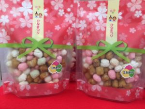 砂糖がけの豆菓子や干菓子、お米をぽんとはぜさせてお砂糖でコーティングした雛あられ、