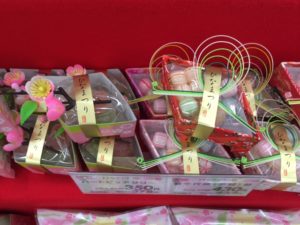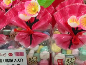 菱餅の菱型に水引きつきなんてのまであったりして。でもやっぱり桃の花付きはポイント高いなぁ。ジェリービーンズのまであったデス。売り場もバレンタインから一斉に雛祭りに転身、この可愛らしいカラフルな世界をながめているだけで、幸せな気持ちになっちゃいます。女子は永遠の乙女なのだ♪