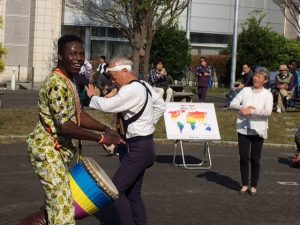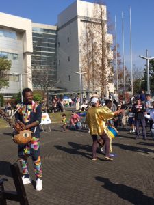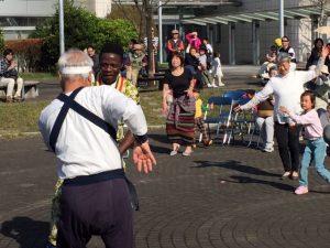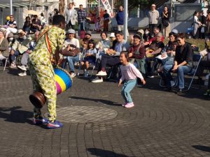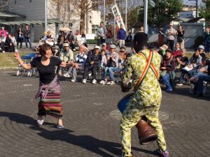 何と言っても楽しかったのはラウラウのジャンベと1対1でセッションしたり、バトルする皆さん♪アフリカンダンスで勝負する女性が最初にラウラウとバトル開始!