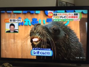 筆は、レオ君が口にくわえやすいようにTの字になっていました。一筆、一筆、一画、一画、ゆっくりと書き、2画ごとに、ちょっと休憩してご褒美の小魚かな?飼育員さん貰っていたのがちょっと微笑ましいカンジ(^^)。いやはや、それにしても何をどうやって、飼育員さんと連携をとっているのかは全くわからず。レオくん自分で書いているとしか思えない。動物は、ほんとうに侮ってはいけないと思います。人間は驕ってはいけない。