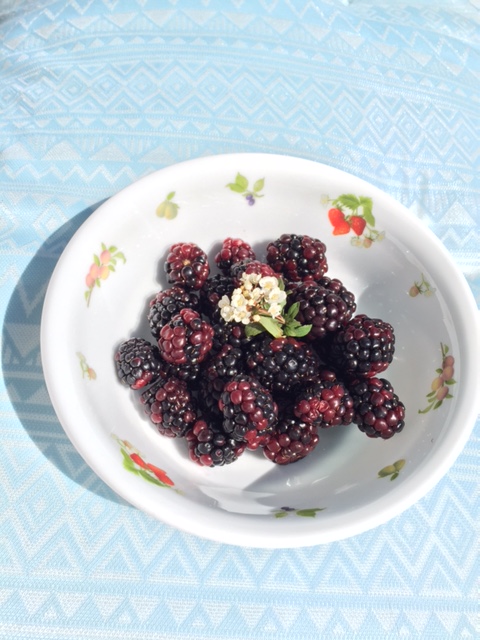 朝、写真に撮ってみたけれど、ほんとうに黒い色で、なかなか美味しそうに撮れないんだね~~なるほど、これはブラックベリーと呼ばれるだけある。でもね、写真のベリーの真ん中に白いお花がのってるでしょ?これは、買った時に、パックのベリーの真ん中にちょこんとのせてあったお花なの。雪柳っぽいだけど、正確にはわからなくて、、、知ってる人、教えて~。この白いお花がちょこんとあるだけで、ブラックベリーが素晴らしく引立てられて、黒っぽい色がキレイに見えると思わない?おじさんが乗せたのか、はたまた奥さんか娘さんか息子さんのアイデアなのか????