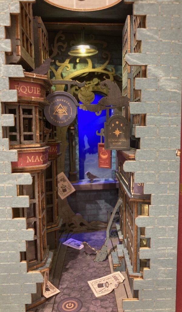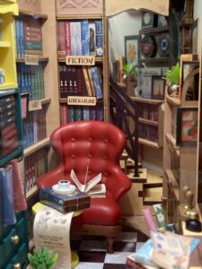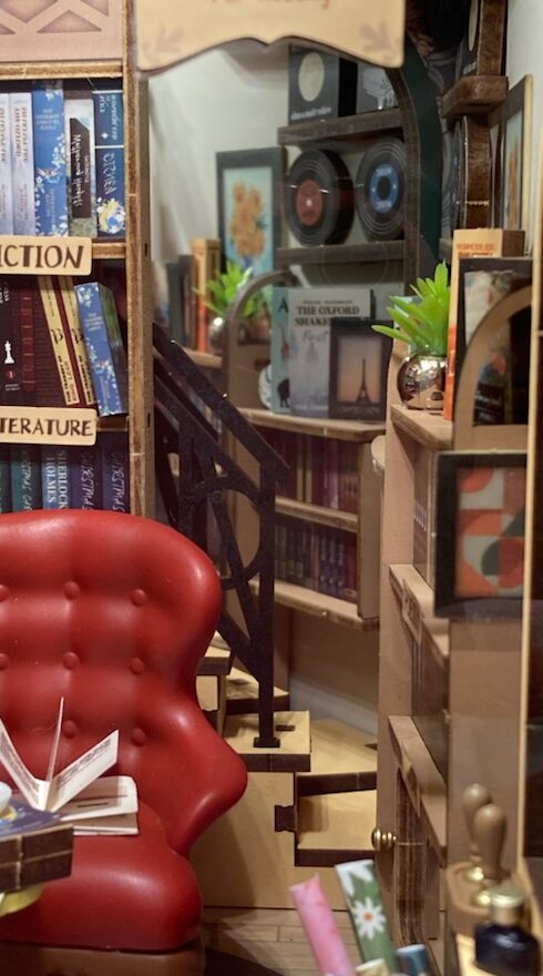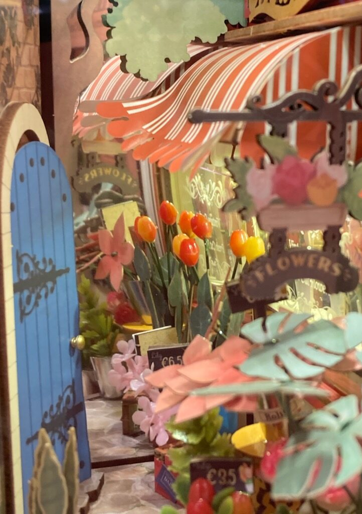 なんとも精巧なミニチュアのDIYの世界が展開されていました!😆✨✨Σ(゚∀゚ノ)ノキャーしかも、よ~~~っく見ていると、ふと、何かが変というか妙な感じなのに気がつく😱💦💦💦3枚目の写真の右の棚に置いてある金の花瓶とグリーンの慣用植物に注目👀👀👀