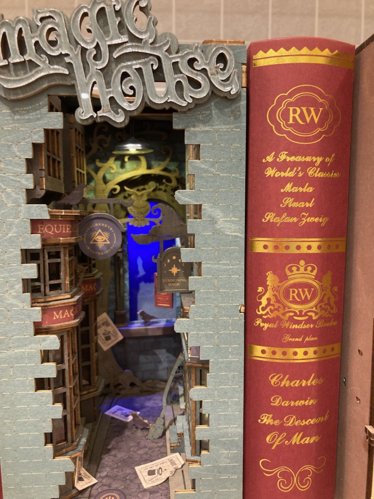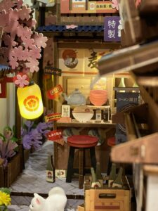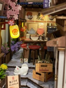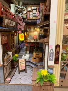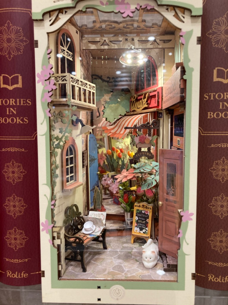 実はどれもみんな、とっても実用的な作品だってことに👍🌟🌟🌟もうみんなは気が付いてると思うけど、ブックエンド=Bookend📚=本立てだったんでチュー🐭💞🐭💞隣に本があるのは、作品の小ささをわかりやすうするためだとばっかり思ってたんだけどネ(∀`*ゞ)エヘヘ🤣💦💦💦この🌸さくらの花が咲いてて提燈がさがっている作品は完全に日本だね!?白猫ちゃんもいる🐈よく見ると看板に魚フライ・🥪とか書いてあるし。あ、画面左奥の提灯の下の紫色の花の植え込みの奥をよく見ると👀👀👀ここにも鑑があるのがわかるよー👏👏👏
