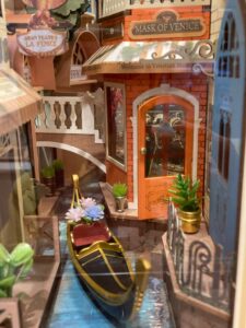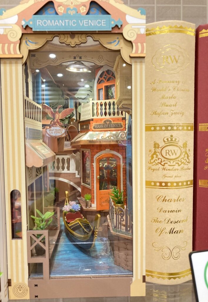 そうなんです😍奥が鑑になって、ミニチュアの世界を映しているんです👏👏👏他もそうなってるみたいだけど、最初の作品が一番わかりやすいかも?4枚目5枚目は見るからにヴェニスの風景だね🌞Romantic Venisって書いてある。奥行き感がスゴイ。そして奥の世界もめちゃくちゃ細かく丁寧に作られててため息がでちゃいマッスル💪😎いったいこれを創るにはどれだけの時間がかかるんだろう?お値段は思ったよりはお安かったけれど、誰にでも作れるのかなぁ~~