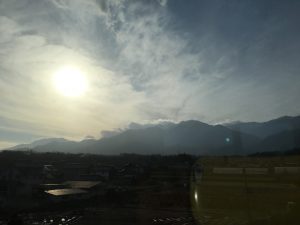 こっちの写真はWinterhawkが送ってきてくれた、この前の駒ケ根公演の時のホテルや駅から見たアルプスの写真や、電車の窓から撮った写真です。