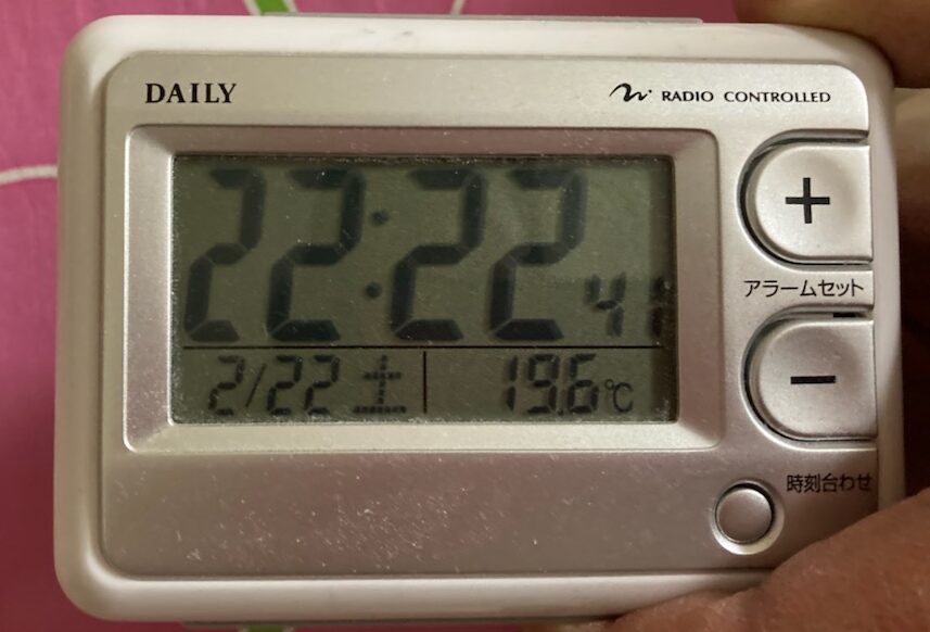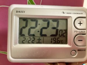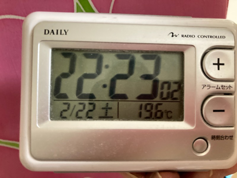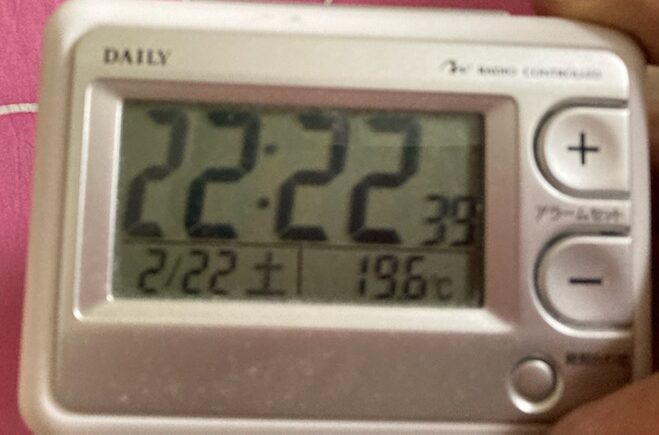 22時21分⏰ギリギリに家について🏃🏃🏃玄関から走り込んで何とかデジタル時計の😸<2/22 22:22>=にゃにゃにゃんニャンにゃんニャン🐈にゃんの写真が取れましたーー🤣💦💦💦