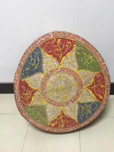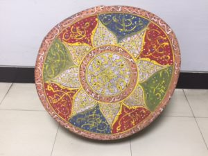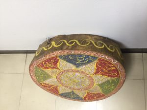 モロッコの話を書いたら、モロッコで買った太鼓をみんなに見せたくなっちゃった。ので、写真を撮りました~。ジャン♪これでーす。どやどや~どや顔っ(^~^)キレイで芸術的でしょ?モロッコの片面太鼓「ベンディール」。片面太鼓はフレームドラムとも総称されていて、世界中にありまっする♪タンバリンのように円形の木枠の片面にだけ、皮がはってある太鼓。大きさ、皮の種類、木枠の木は生まれた国の環境に合わせて様々だし、他のポピュラーな打楽器類と同じく、現代版では雨や湿度に左右されにくく、チューニングが出来たり劣化しにくいファイバーやアルミの枠や、ファイバー樹脂のヘッドもあります。