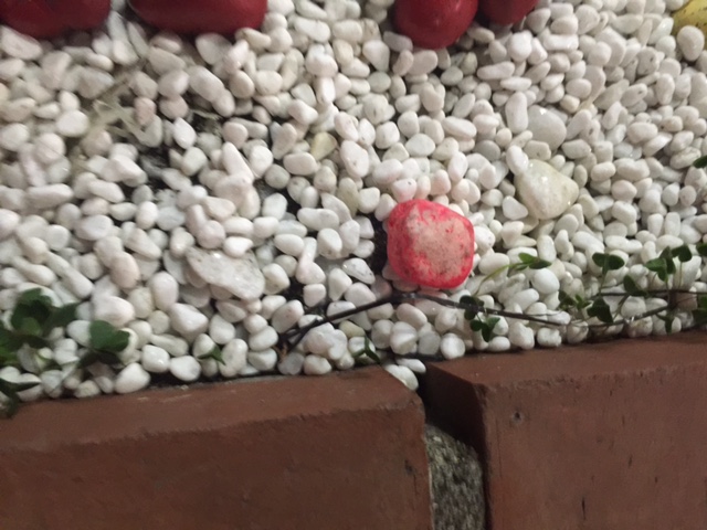 消防署の玉砂利アート、最新の標語は「卒業おめでとう!」になってました。そうか、3月11日頃っていえば、そうだよねぇ(^^)ん?なんだろう?何かがアピールしてくるような???ああ、これだ!