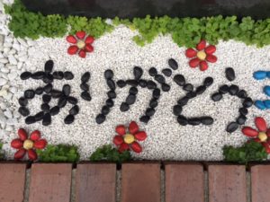 まだまだ大分先だなって思っていた天皇陛下の退位が、いつのまにか、もうすぐになってしまったことを突然実感して、ちょっと慌ててしまいました。。。消防署は、消防車が入庫しているところで、たくさんの隊員が出入りしている所でした。玉砂利アートの写真を撮っていたら、おじさん隊員が数人寄ってきて、みんなでにこやかに玉砂利アートを鑑賞し始めたので、思い切って訊いてみました。「あの、これって、どなたが作っていらっしゃるんですか?」おじさん達は顔を見合わせて笑っていたけれど、どうやら守秘義務があるらしく、「んん?女性職員かな?」と曖昧な返事しかもらえませんでした。でも、訊かないままでもいいかなって、訊く前にちょっと思ったりもしたのだ。