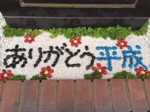消防署の玉砂利アート、最新は・・・・「ありがとう平成」きょう、天皇皇后両陛下が伊勢神宮に入り、明日は退位を報告する「親謁の儀」に臨まれる。伊勢に住む、敬愛するU宮司さんと電話でお話ししたところ、伊勢神宮のまわりは一週間前から警備が厳しくなり、今朝はもう大変な警戒態勢だったそうです。