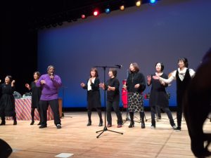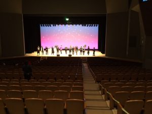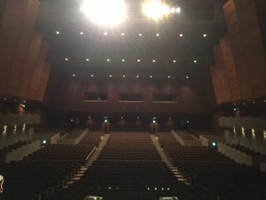 ホールに向かう途中、名古屋から公演を観に来たという社会人の娘さんをピックアップしてホールに着くころにはすっかり真っ暗。劇場って好きだなぁ。ここもステキなホール。最後部席から左右、客席全体をまわってホールによろしくね♡とあいさつ。ところで知ってた?名古屋と駒ケ根、バスで2時間しかかからないんだって。他にも孫と公演を一緒に観る理由で名古屋から来た初老のご夫婦がいたりして、名古屋から意外に近いことに驚いちゃった。