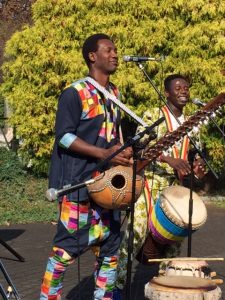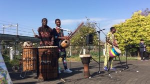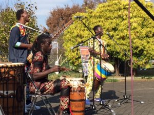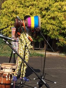 「バイファル・レボリューション」3人編成=ラウラウ(ジャンベ&Vo.)+ブジュ(コラ&Vo.)+ンボイ(サバール+ドゥンドゥン&コーラス)。アブドゥがいないこの3人編成は、ちょっとレア。西アフリカの太鼓サウンドと歌とコラ。青空と太陽と緑が最高に似合うサウンドでした。