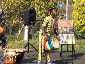 楽器紹介のコーナーも、興味深々なようすで、みなさんきいていました。写真はジャンベの紹介をするラウラウ。もうひとつは、サバールを紹介するサンバ。ブジュのコラの紹介は残念ながら写真がなくて、ごめんね(>。<)コンサートの後も、たくさんのお客さんが楽器のことを訊きにきました(^^)コラは珍しいせいか、長い事囲まれてました♪
