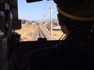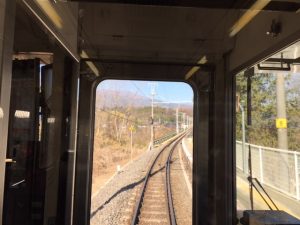 電車が来たので運転席そばの空いてる席に座って、楽しい電車の旅の始まり始まり~~