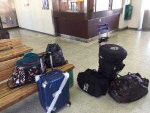 さて、この荷物、どでがMariのでどれがWinterHawkのでしょう?ヒント;今回Mariは荷物少ないよー!荷物運びで手首痛めたのがなかなか治らないので必死にコンパクトにしたもんね~(リュックしょってるけど)