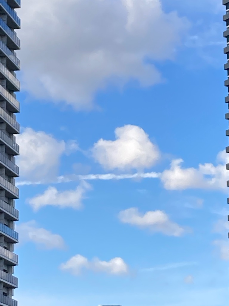 自分でも慣れちゃって分からなくなってしまいがちだけど、住んでいる街はビルやマンションがどんどん増えて、空がどんどん狭くなってるんだなぁ~・・・・有明エリアも、大きなビルや競技場など、どんどん開発が進んで、工事もいつの間にか進んでいて、ここ2~3年でも(あれ?こんなおっきい建物が建つんだ???)ってびっくりする場所があって空が狭くなってきてるけれど、それでも圧倒的にひろい空や🥰飛行機が飛んでたのも写真にパチリ🌟と撮れました👍🛫