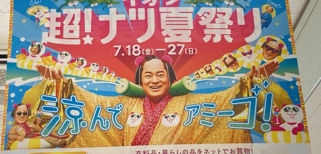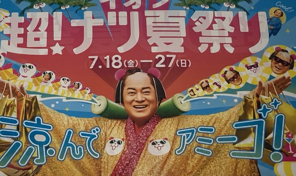 🌈健さんが、本当にあの衣装で🎤も持って登場🙌短い1コーラスだけの演奏でアッという間に退場してしまってガッカリだったけれど、ちゃんと生で歌ってくれたし、盆踊りのダンサーさん達の振りも観られたし、ありがたいと思うことにしました。ホントならコンサートのチケットを入手して前の方の良い席を確保しなかったら観られないんだもん。しかも!その後にまた司会やスタッフのトークがあった後に健さんが衣装のまま再登場👏スーパーの夏セールの宣伝アンバサダーとして、スーパーの推し商品を試食させられたり、プレゼント抽選でボトルが当った人(たった一人)にサインを書いて握手したり・・・羨ましーぞー🐘パオーン🎵
