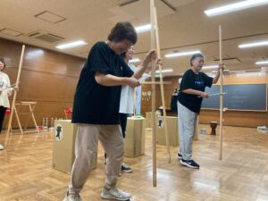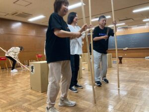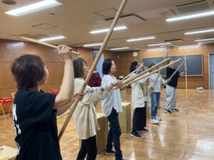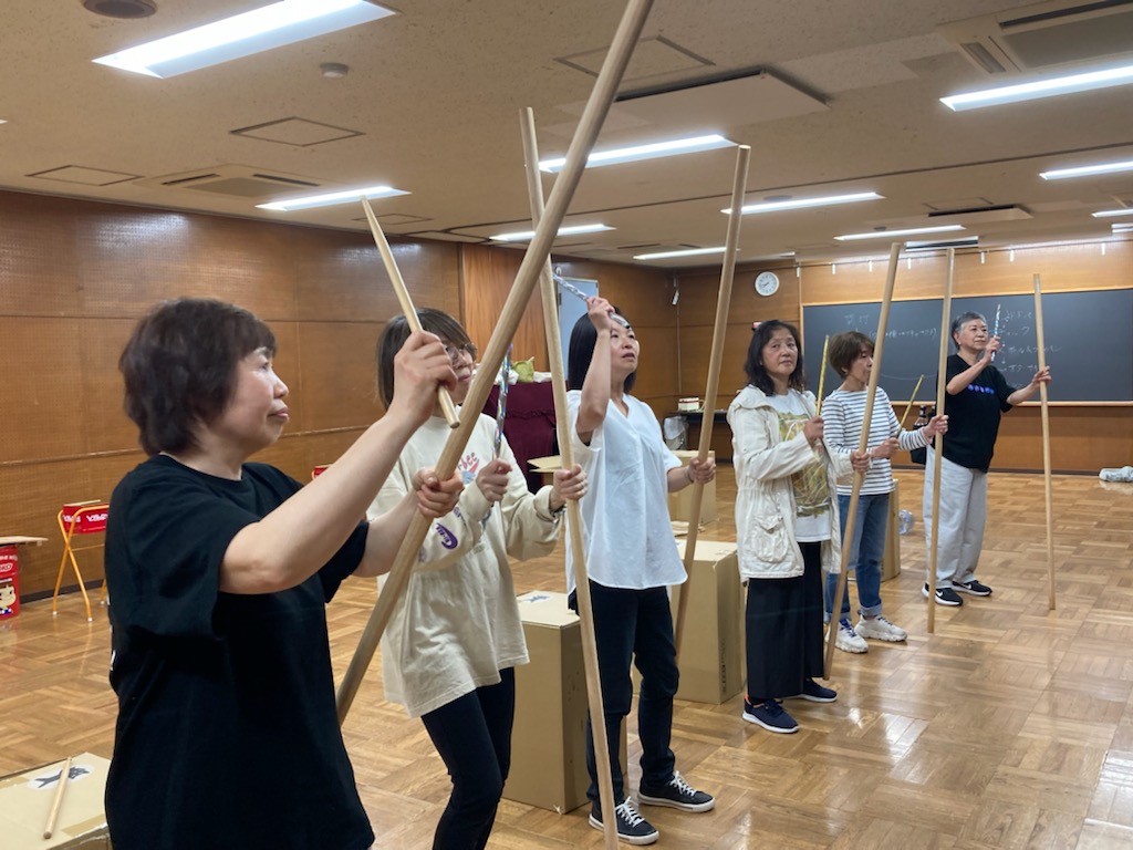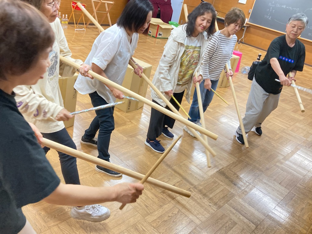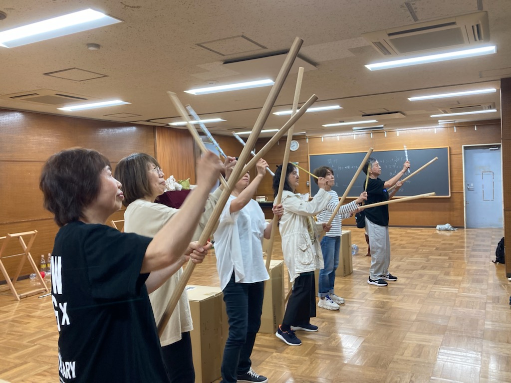 これは発見だね!さすが<JUMBE>💖叩く度に棒が跳ねるので、それを元に戻したりしながら演奏するのがちょっとムズカシイけど、みんなもうマスターしつつありました。😁👍🌟そこから棒を1本ずつ左手に持ち、右手にはスネアドラムのスティックを持って、どこかの部族さながらに歩き回りながらフォーメンションを汲むブロックに移行。まるで演奏しながら諸国を巡礼しているかのようだというので「ババ巡礼」という名が付いたブロックですニャ🙀この「ババ」に当てはめる漢字はご想像にお任せしまチュー🐭まあ、<JUNBE>が大人しく、ただ「ババ巡礼」で終わるわけがないでしょ?