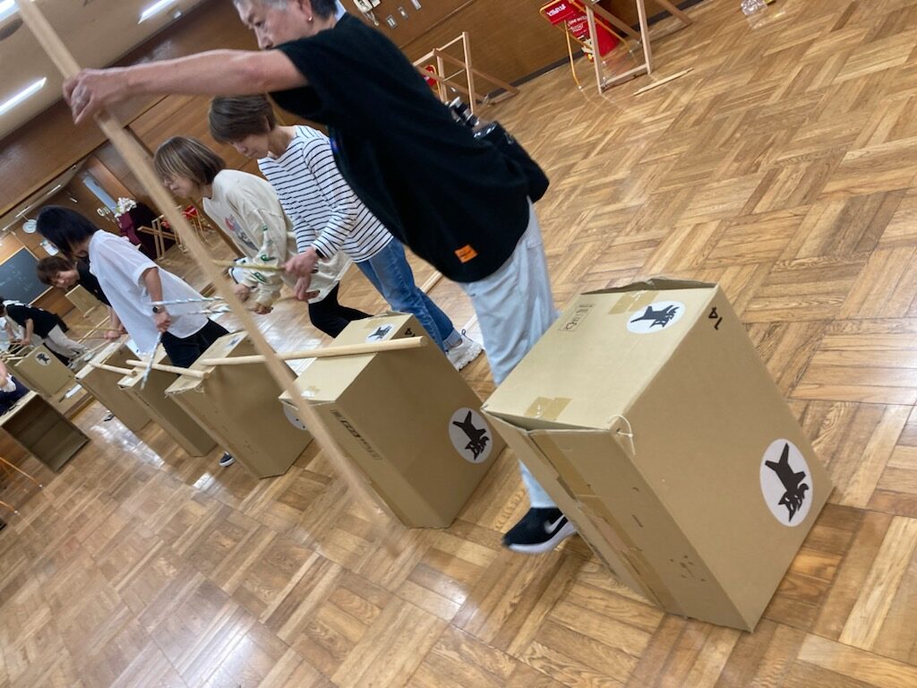 段ボールを並べた上にずらりと横に棒を並べていくsettingだったんだけど、これが実に想定斜め上をいく↗芯があるよく響く言い音でした🙌棒自体も、段ボールの上で固定されないまま置かれているので叩くと跳ねながら響きのいい音を出す上に、さらに📦段ボールが共鳴体になって思いがけない低音も同時に鳴るんでっする💪😎🌟