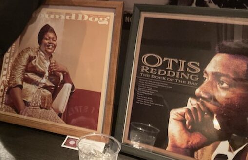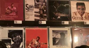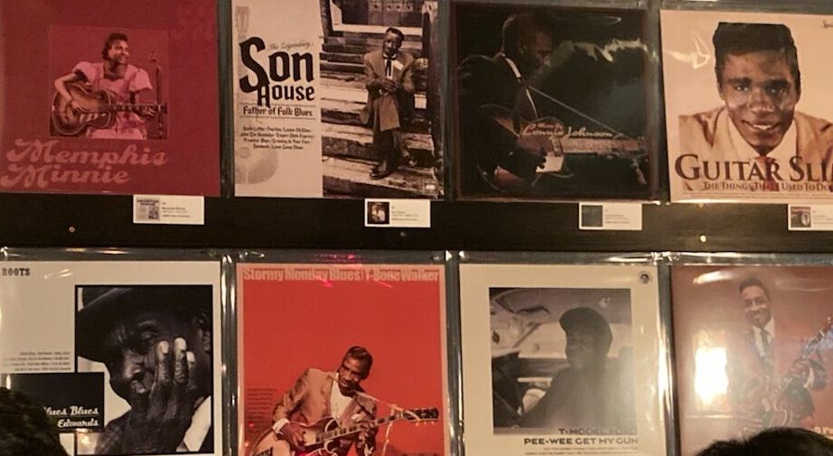 ブルースに詳しい人が見たら「おお~~💖👨👍」と喜びそうな有名な往年のブルースアーティストの名アルバムのジャケットがずらりと並んだ壁面。松代くんに訊いてみました。「どういうキッカケでこういう作品を創ろうって思ったの?」