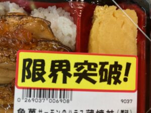 最初に見たのが「ほぼ具」。実際ほぼ具の海苔巻きで思わずあははは!って嬉し笑いしてしまいましたなり。寿司飯は美味しい~けど、カロリーが高め。だからご飯少な目でお刺身の具がうんと多めの海苔巻きは我理想の海苔巻きぞよ~🐳🐳🐳その隣に並んでいた「はみだし過ぎ!」のキャッチコピーのはみだし巻きとかは、ほんとにご飯よりも海苔よりも具のお刺身の方がうんと大きいし、限界突破!ってなんだろ?って四字熟語の力強い漢字のキャッチコピーに思わずひかれて見入ってしまうと、すごいボリュームで中身が充実したお弁当なのにお値段が信じられないくらいリーズナブルだったり😻