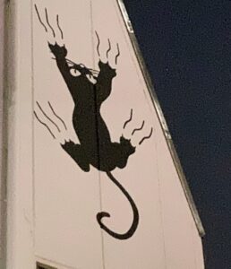 壁からずり落ちそうなのを必死にしがみついているんんです🙀💦💦💦バンクシーならぬニャンクシーの仕業か???低層階ビルとはいえ、いたずらや酔狂で絵が描ける高さやシチュエーションではないので、持ち主さんがオーダーしてプロに描いて貰ったんだろうけど、なかなか面白いというか、かわったビルだよね~どうしてこんな絵を描いたんだろう?これはニャンクシービルの謎だニャ~~❓❓❓