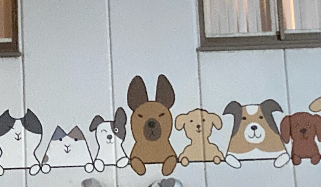 あれこれ想像しながら道を進むと🏢ビルの正面が見えてきました。1階のガラス戸の上に大きな看板があってその上にずらりと動物達が並んでいました🤗👏ちゃんちゃん🎵💞このビルは、動物病院だったのでありました~ニャン😻✨✨✨かわいいビルだニャ~。でもあの黒猫ちゃんはちょっとかわいそう・・・😆