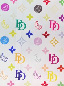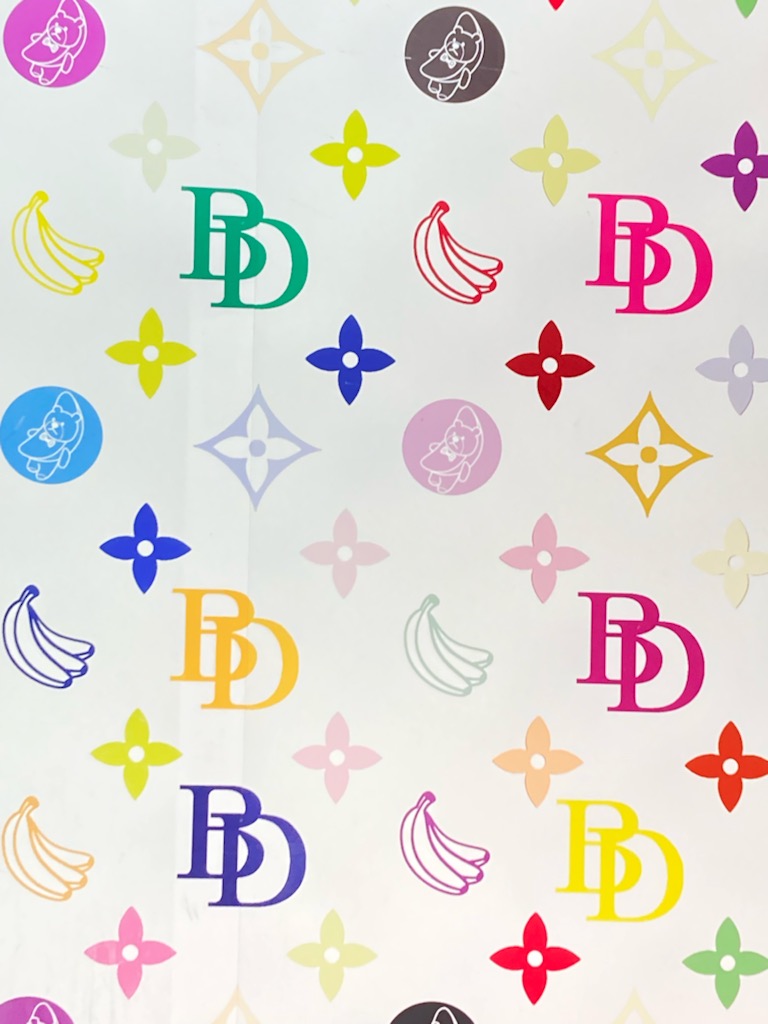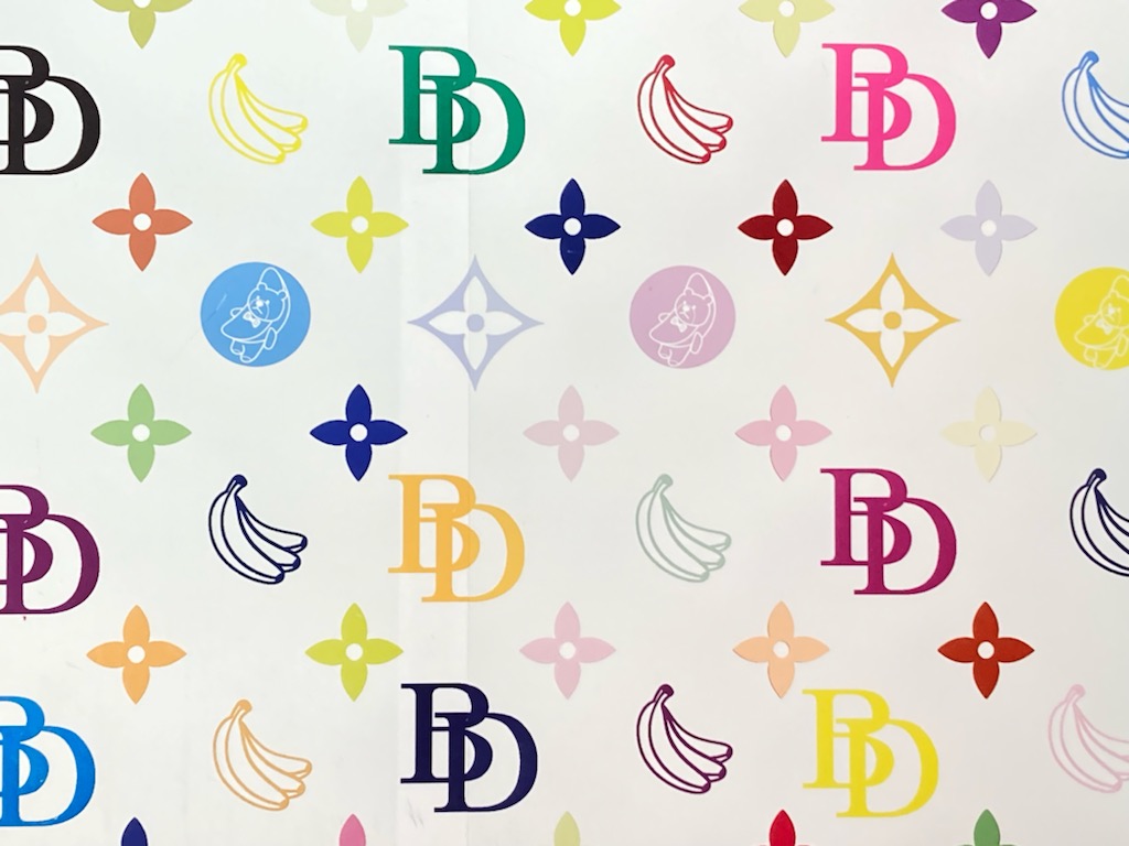 写真は、たまたま見かけたショップのディスプレイ。ブランド品はとんとわからない派だけど、ヴィトン?のカラフルなモノグラムデザインが出た時以来、あれは好きなんだけど、似てるので写真撮っちゃいました。よーく見たら🍌とか混ざってるし全然違うモノだった。( ゚∀゚)アハハ八八ノヽノヽノヽノ \ / \/ \