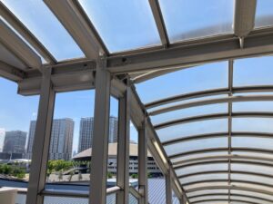 ハイテクなデザインの陸橋を運動のために階段でえっちらおっちら上って行く時に、天井というか屋根の辺りに一瞬、小鳥の尻尾?=尾羽?が見えたので、