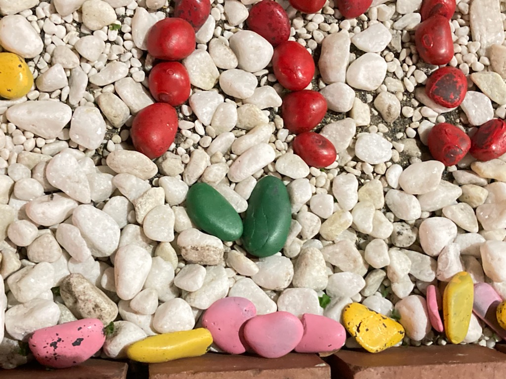 ズバリ💣🌟🌈こちらでした~😆 それにしても、カラー玉砂利の色使いがとっても明るくて楽しくて、POPで、デザインもよく見ると💖ピンクや💙水色のハートがあったり、、、