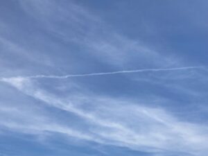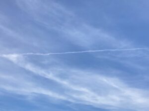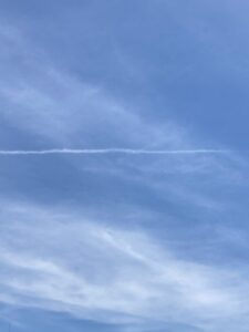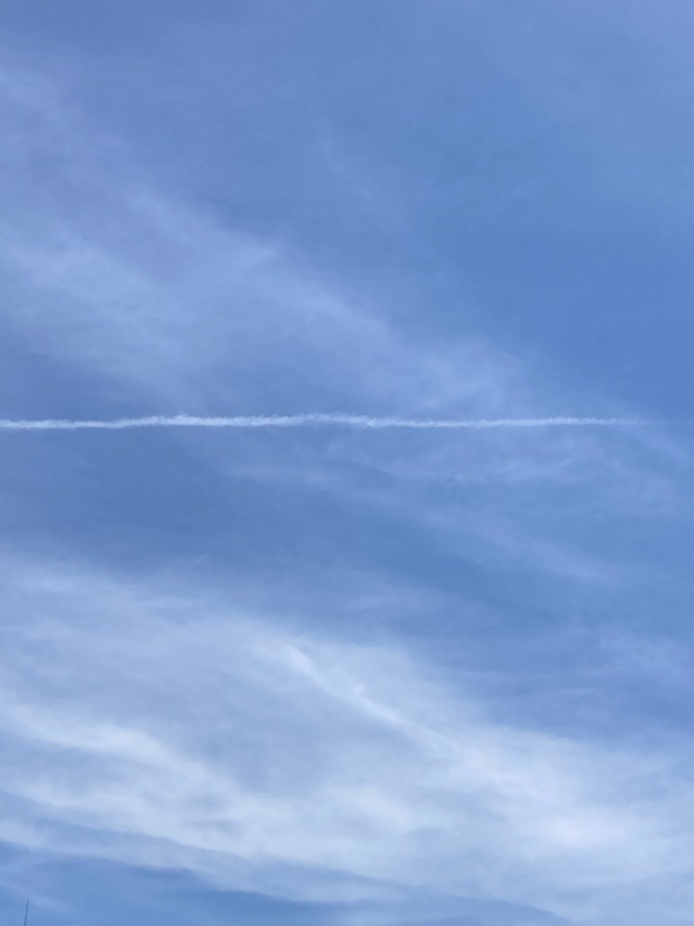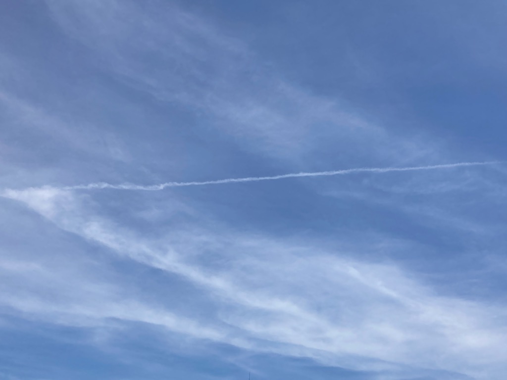 ひこうき雲見つけたー!まっすぐで長~いの。久しぶりにこんなの見たよ😊いいことありそう💖