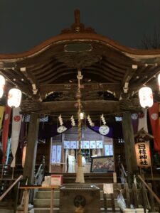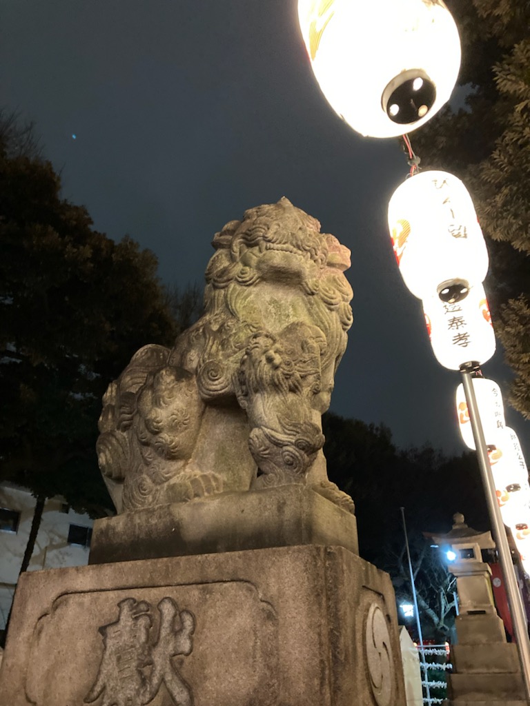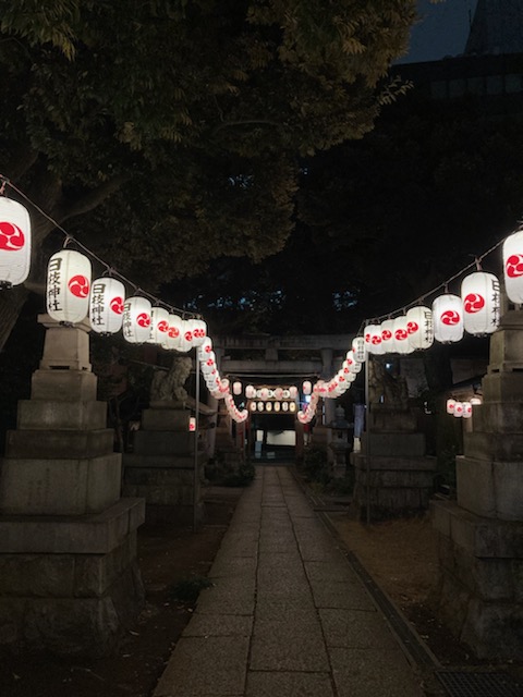 初詣に行ってきたよー。用事があって行ったエリアを歩いていたら、偶然、暗い夜道に浮かび上がった日枝神社の提灯を発見✨✨✨