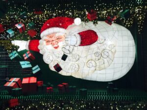あれからも1年たってるなんて、ウソみたい~~(∩´∀`)∩コロナで時が経つのが早いような遅いような、変な感じがしまっする。明日は、RINAさんとDaviちゃんとMariの3人で行くのだ🎅🌟クリスマスソングも用意して、ちょっとクリスマスな演出も考えてま~す。写真は、スマホの故障を相談に行った銀座のアップルストアで、入場できる時間を待つ間、向かいのデパートのディスプレイにあった、ねぶた祭みたいなサンタクロースで~す。今、改めて見たら、一枚目の写真、サンタが空を飛びながら🎁プレゼントを撒いているみたい???それにしても、マスクを長時間していると、たしかに耳の後ろが切れちゃったり、頭が痛くなりますにゃ~~(;´д`)トホホみんなは大丈夫?