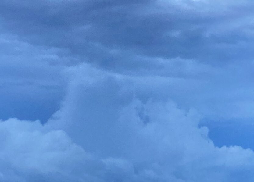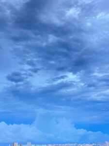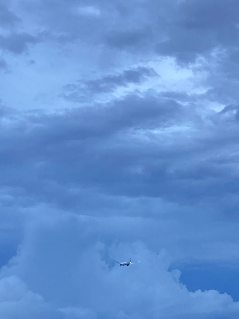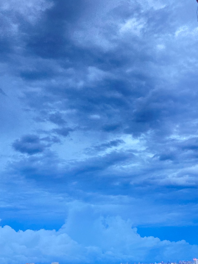 見たことも聞いたこともない凄まじい雷鳴がとどろき、豪雨で大変だった先週。空が光るたびみ両手で耳をふさいでも、どこかの避雷針に落ちた⚡雷の音が凄すぎてで飛びあがってた時間が過ぎ去った後の空の写真です。なんとも言えない美しい雲、何層もの世界が同時に存在しているような異なる感じの雲たちが、まだ姿を見せない🌞太陽の光を受けてるのか芸術的で複雑~な陰影で、まるで生きているみたい😳✨
