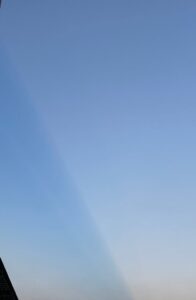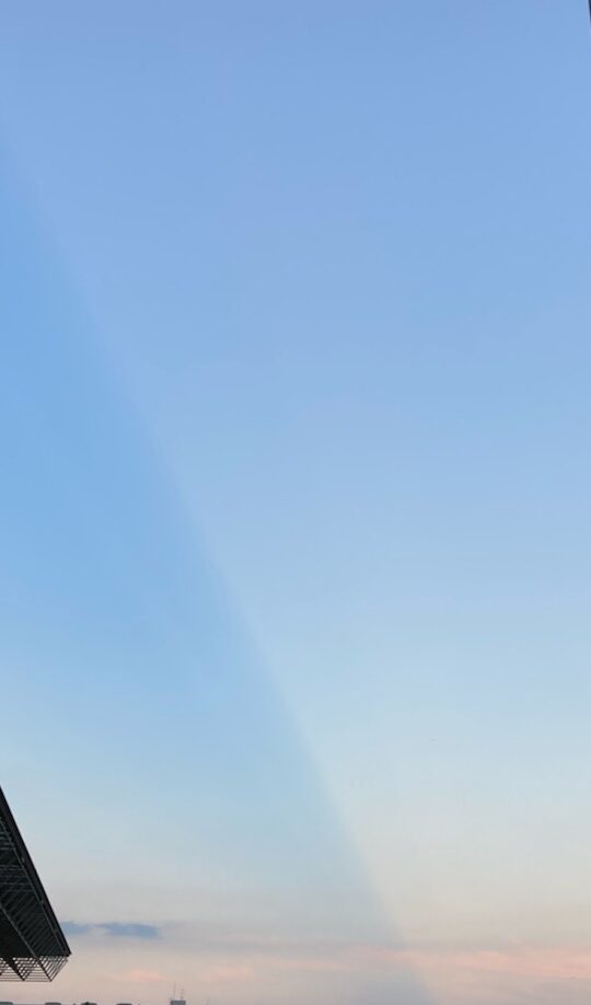 8月8日に見つけた🌈虹?の写真です。🌈だよね?7色とまではいかなくても見る角度が変わればもう少し色がみえるんじゃないかと思って、一生懸命ある木ながら見てたらだんだん境目が薄くなってきて消えちゃった😿💦💦💦