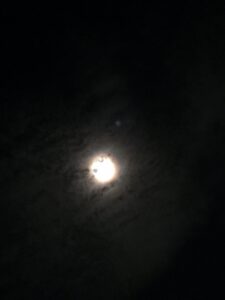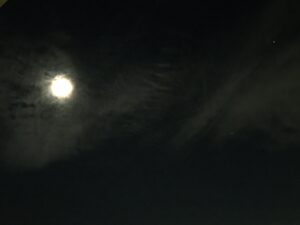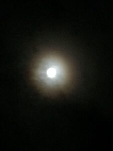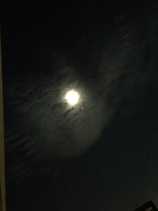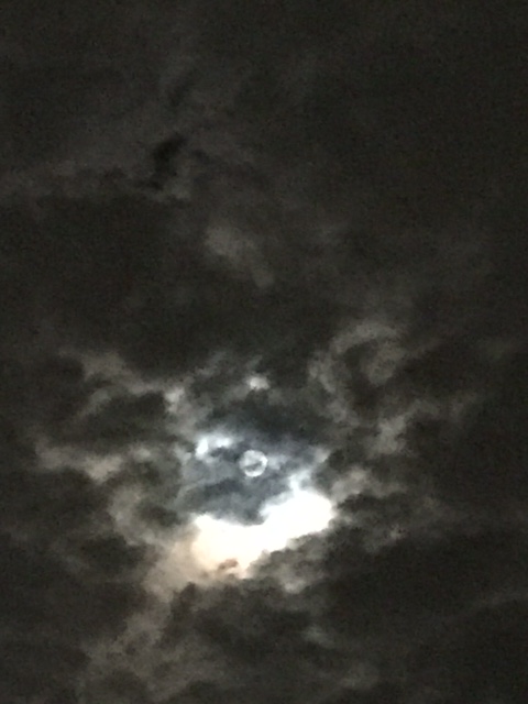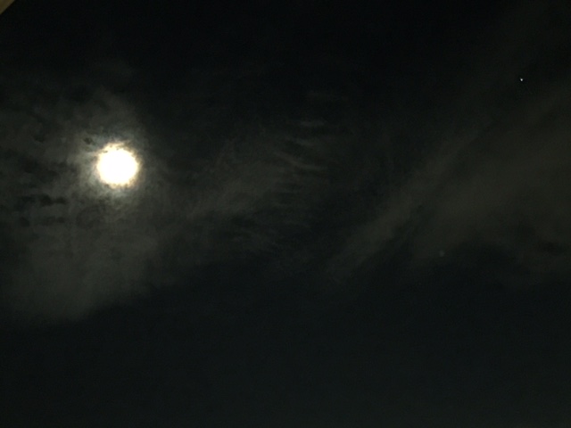 うまく見えるかな?実際には光の七色の輪がぼんやりと輝いていました。月輪っていうのかな???でも写真ではどーしても撮れなくて・・・・・・やっぱり実物を見られるのが一番だよね(●´ω`●)月光も浴びられるし、🐝虫の声も聞こえるし、さわやかな夜風も心地よいし🎵