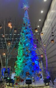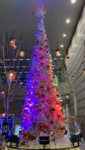🌟🌟さて!音楽に合わせて色が変わるクリスマスツリーがファンタジックだったので、みんなに見せたくて写真を撮りました(⋈◍>◡<◍)。✧♡📸どう?なかなかでしょ?実は、ツリーそのものは真っ白で、ライトをあてることで色を変えているの。このレンボーカラー変化になるまでは、白に淡いグリーンの状態とか淡い赤の状態が音楽に合わせて延々と続くので、待ちきれずに帰ってしまったこと4~5回。