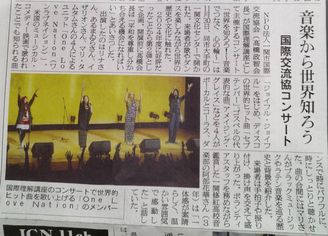 一関市国際交流協会からうれしい公演のレポートが届きました。高校生ボランティアのO青年のレポート文がステキだったので、紹介させてね?感性豊かでまっすぐな青年のレポートを読んでいたら、改めて、がんばろうっていうパワーを貰うと同時に、常にLove & Respectを意識していようと強く思いました。完璧からは程遠くても、少しでもそういう自分でいたいもんね😘✨✨✨