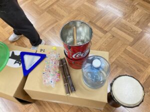 ドアを開けると、全員揃って段ボールを並べて真剣に練習中。振り向いたイリちゃんが👧👌「あ、違う違う、時間間違えてないからダイジョーブだよ。6時に集まって楽器のチェックや段取りしたからついでに練習始めてただけ。」って言ってくれるまで、遅刻したかと思って2人で冷や汗かいてしまいました。(笑)🔥お尻に火がついてる状態かな?1分を惜しんで3時間みっちりリハ。みんなパワーあるわい、ふぉっふぉっふぉっ。練習の最後に楽器の出し入れの確認リハも念入りにやって、今日は終了🙌✨✨✨