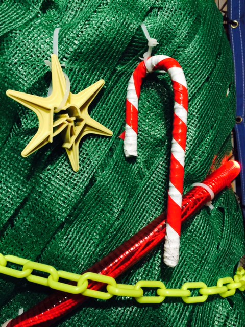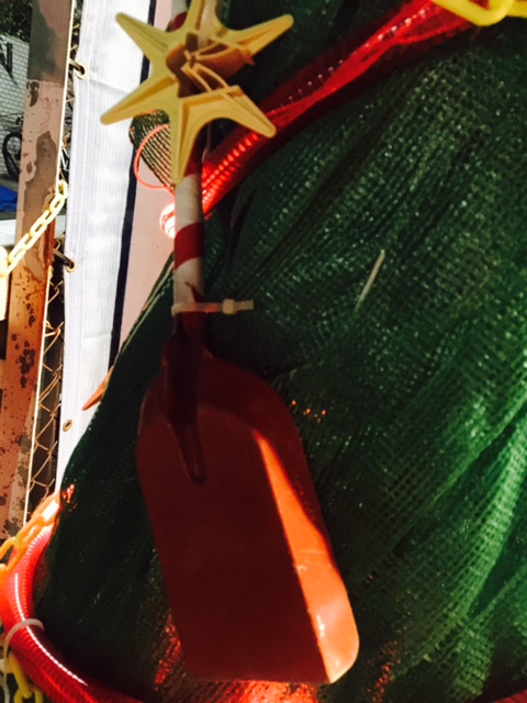 そうなんです~😘飾りつけのオーナメントご注目~~わかる?わかった?どれもが、ぜーんぶ、建設現場で使われている道具やパーツなどなんです!Σ(・ω・ノ)ノ!驚き桃ノ木でありまっするクリスマッスル🌟🌟🌟