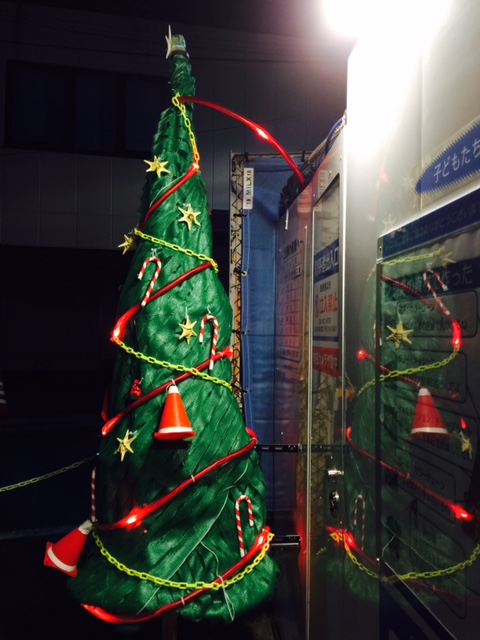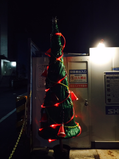 Mariは建設現場で使われているものについて、あんまり詳しくないので、最初に気づいたのは、🎅サンタクロースの帽子が、赤いカラーコーンに白い蓄光テープ(夜行テープ?)をぐるりと貼って作ってあるってこと。