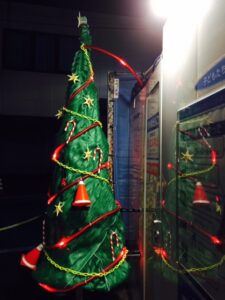 おおーーー📅いよいよあと4日?ですね。そんな時だけど、今年1番🌟って思ったクリスマスツリー🎄を紹介しま~す。🎉パンパカパ~ン🎵寒空の下、屋外に輝くツリーを発見!どんなクリスマスツリーかなって近づいてみると・・・・・ん?( ,,`・ω・´)ンンン?なんだろ?何かが違う❓😲❓