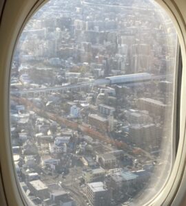 搭乗時間ギリギリ前まで一関文化センターの舞台の担当者の方と電話で打ち合わせして、ほぼ満席の小さい飛行機に乗って約1時間40分のフライト。