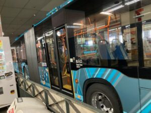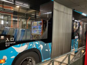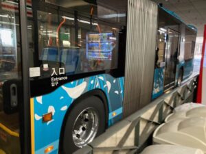 もうバスが動き出していたので、うまくとれなかったけど、とーっても🚌胴長なバスでした。連結してるいたいに見えた。