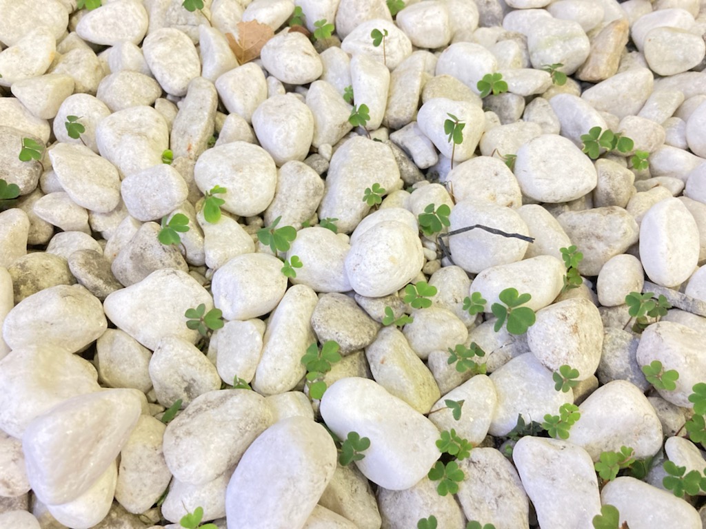 むしろ以前より数は増えてる?し、場所も拡がってる❓❓❓🍀🍀🍀😵🍀🍀🍀💪😎自然は逞しいのだ🌟「入学シーズンオメデトウ」というカラフルな玉砂利の文字も春っぽくてステキだけど、🍀ちっちゃな赤ちゃんクローバー達の若緑色と、玉砂利の白もとっても春を感じる爽やかな取り合わせですニャ😸✨✨✨あしたの夜は、5月18日(土)の奥沢駅前音楽祭の2回目の会合ミーティングで~す。残念ながら天気予報は雨だけど、あっちの方は桜、咲いてるかな?🌸🤗🌸