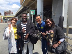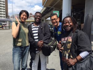 茨木の駅でチャーリーとミリィーとお別れ。チャーリーさんは役者活動のかたはら、クラーク学院で演技指導のクラスも教えているんですよ~~見た目通りの熱血ハートフルな先生です。