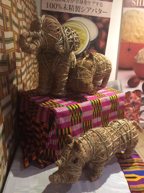台やパテ―ションを飾っている布は、何気なくガーナの織物のケンテです。ピンクのケンテがきになります。織物だから、どことなく日本の紬の柄にもにているような、、、???気付いた?下にもう一匹いるの。サイで~す♪このコは、角はもちろんですが、お顔は一番愛らしかったです。眼が大きいからかな?それから。ボディの筋肉の躍動感が素晴らしかった。後日、ゆっくり撮り直しに来ようと思っていたけれど、結局そんな時間は全くなく、これだけになっちゃったけど、ガーナの藁で出来た動物さんたちでした~。ここのところ、写真がかすんでしまうので、スマホのカメラが不調なのかと思っていましたが、レンズを拭いたら、ちょっとよくなってきました(^。^)