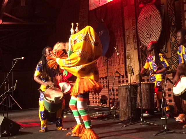 もしかして、これ、鳥みたいです。それにしても、お面なのに、ダンサーの動きで表情が変るのも面白かった!コートジボワールではとても有名なグロ族の「ザウリ」または「ザオリ」というダンスだそうです。パーティーやお葬式など、大事な時に披露されるダンスで、上半身は全くブレナイまま、足だけが高速でステップを踏むというスゴ技ダンス。前の日のコートジボワール・デーのビデオでちらりと見た伝統的なダンスが、突然、ステージに現れたので、ほんとうにハイになりましたなりん(^^)