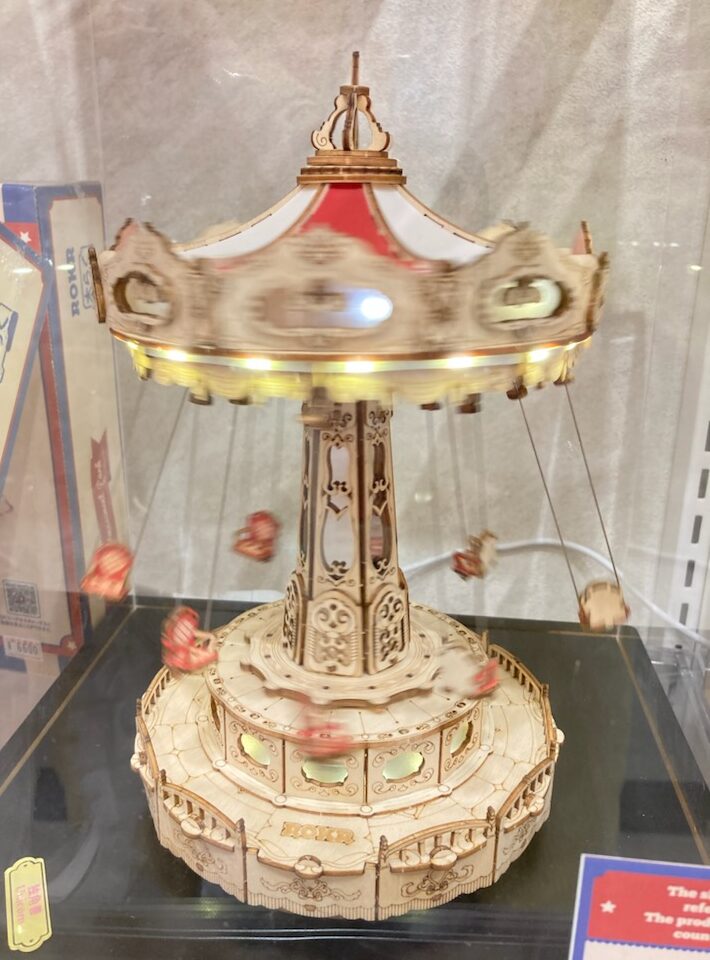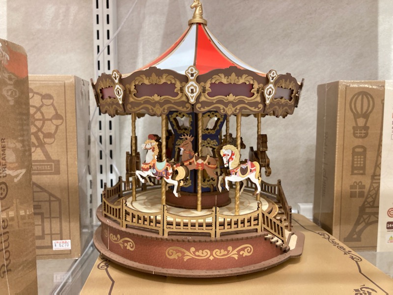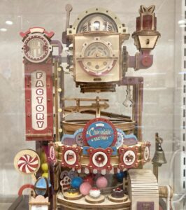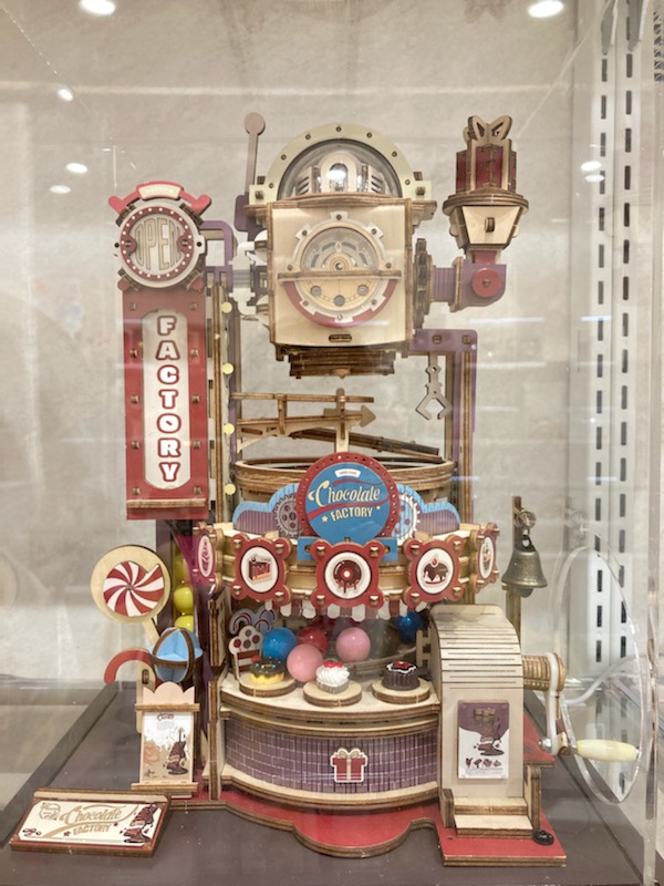 新しく出店した小さなショップなのか、アート作品のギャラリー展示会場なのか?ペーパークラフト風の歯車の機械仕掛けの作品や、レトロな映画に出てきそうな馬車や、遊園地などの作品がたくさん並んでいました。しかもあちこちにわざわざ「撮影OK」というポップ。時代が変わってきたのかも・・・「店内写真撮影はご遠慮ください」って書いてあるのが普通だったのに、いつの間にか、SNSで拡散してくださいと言わんばかりに撮影OKになってきてるんだもん。